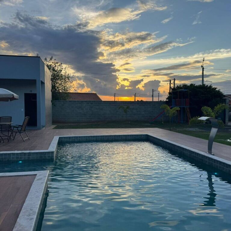 Chácara Petrosky 3 – Limeira-SP (1,5 km após o Zé do Pote.Espaço amplo com piscina, campo de futebol, área gourmet e área verde. Conta com 2 quartos com ar-condicionado, camas e beliches, cozinha equipada e estacionamento. Ideal para lazer e confraternizações.