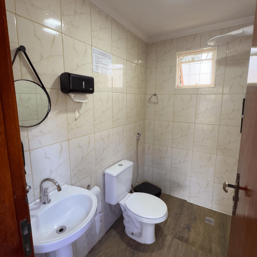 Conta ainda com 1 banheiro interno e banheiros externos masculino e feminino.