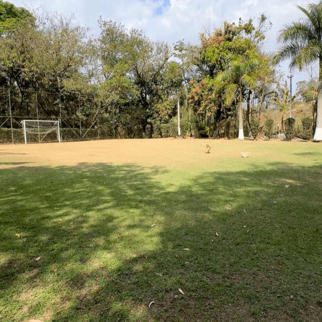 A área externa garante diversão e comodidade, com piscina e 4 espreguiçadeiras, campo de futebol, playground infantil, mesa de sinuca, além de TV externa e ventiladores de teto.