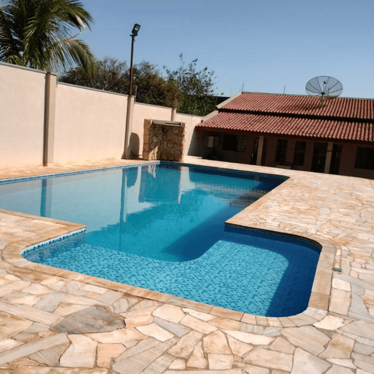 Linda chácara para eventos familiares com até 40 pessoas, quartos com ar-condicionado, ampla piscina, amplo salão coberto para festas e mais, confira!
